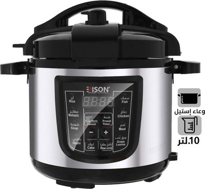 قدر ضغط كهربائي إديسون، 10 لتر، 1400 واط، وعاء داخلي استيل، 10 وظائف طبخ، GT1001-W/SS - فضي اسود product image 1
