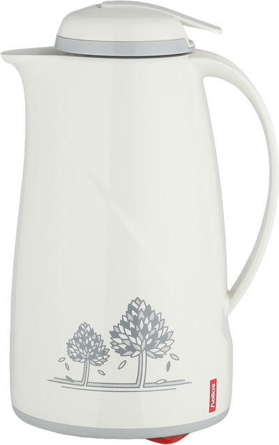 ترمس الماني هليوز، 0.6 لتر،حافظة داخلية زجاج، غطاء ضغاط، خدمة ذاتية - كريمي رمادي
