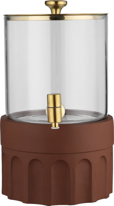 موزع مشروبات فخار السيف غاليري، 22x22x35 سم، وعاء زجاج، قاعدة فخار - بني