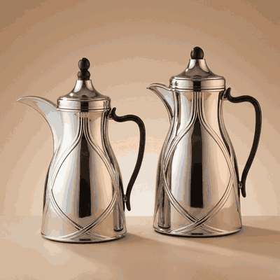 طقم ترامس طيف السيف غاليري، 0.7 / 1 لتر، 2 قطعة، خامة داخلية زجاج، يد أسود، غطاء ضغاط - فضي لامع