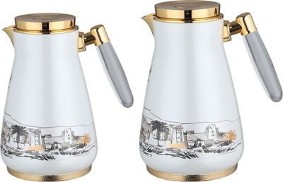 طقم ترامس أصال السيف غاليري، 0.75 / 1 لتر، 2 قطعة، حافظة داخلية زجاج، هيكل خارجي أستيل، ضغاط، يد شفاف - أبيض لؤلؤي ذهبي
