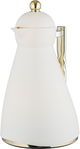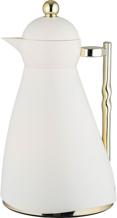 ترمس نور جلوري، 1 لتر، حافظة داخلية زجاج، ضغاط، يد ذهبي- كريمي