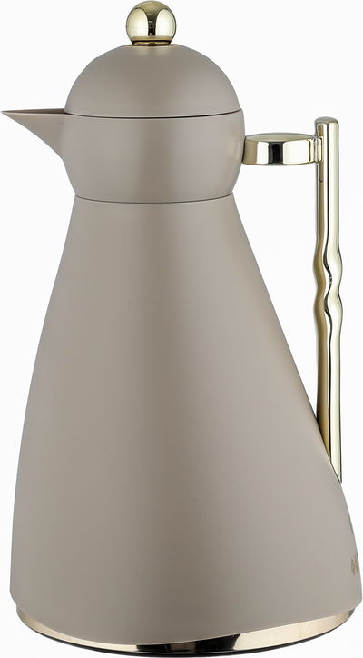 ترمس نور جلوري، 1 لتر، حافظة داخلية زجاج، ضغاط، يد ذهبي- كابتشينو product image 1