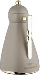 ترمس نور جلوري، 1 لتر، حافظة داخلية زجاج، ضغاط، يد ذهبي- كابتشينو