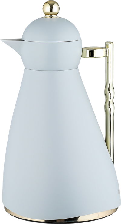 ترمس نور جلوري، 1 لتر، حافظة داخلية زجاج، ضغاط، يد ذهبي- رمادي فاتح product image 1