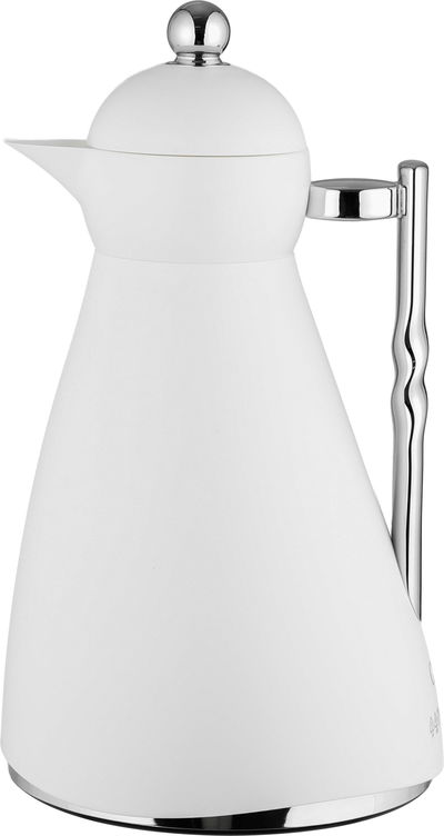 ترمس نور جلوري، 1 لتر، حافظة داخلية زجاج، ضغاط، يد فضي - أبيض