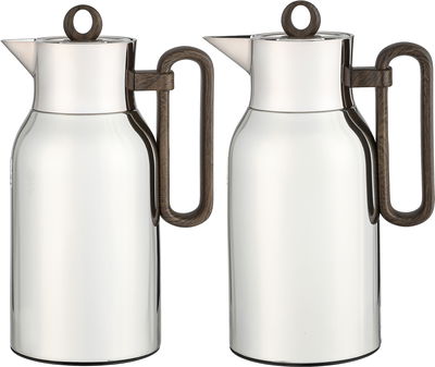 طقم ترامس الدرة السيف غاليري، 1 / 1 لتر، 2 قطعة، حافظة داخلية زجاج، ضغاط، يد خشبي - فضي لامع