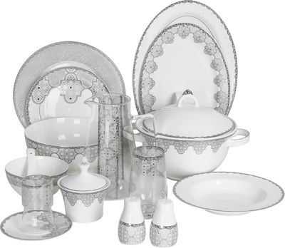 طقم سفرة بورسلان زجاج السيف غاليري، 61 قطعة، منقوش - ابيض شفاف