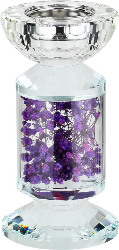 مبخرة زجاج السيف غاليري، مزينة زهور موف، 8x8x15 سم - شفاف