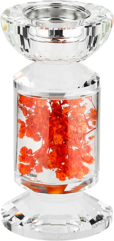مبخرة زجاج السيف غاليري، مزينة زهور برتقالي، 8x8x15 سم - شفاف