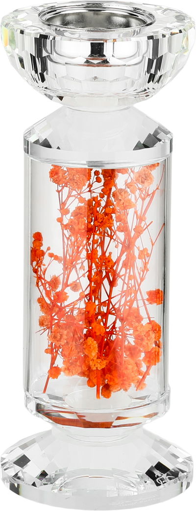 مبخرة زجاج السيف غاليري، مزينة زهور برتقالي، 8x8x19 سم - شفاف