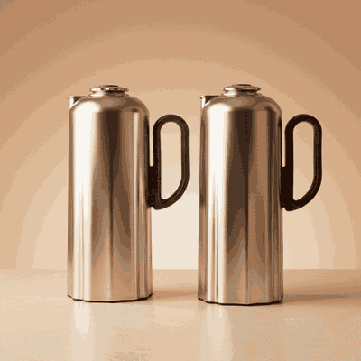 طقم ترامس نجدية السيف غاليري، 1 / 1 لتر، 2 قطعة، حافظة داخلية زجاج، يد خشبي، ضغاط - فضي مطفي