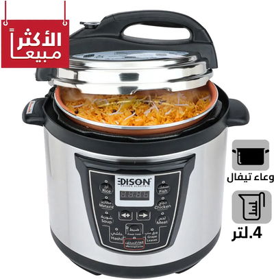 قدر ضغط كهربائي إديسون، وعاء داخلي تيفال، 800 واط، 4 لتر، 10 وظائف طبخ، VT-402D - أسود فضي