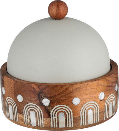 Al Saif Gallery Sword Gallery Wooden Date Palm Tree, 13.5x13.5x13 cm, Steel Lid, Round - Light Wood Gray