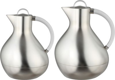 Al Saif Gallery Layal Thermos Set, 0.6/0.9 Liter, 2 Pieces, Glass Interior, Plastic Exterior, Transparent Handle, Push Button - Transparent Silver