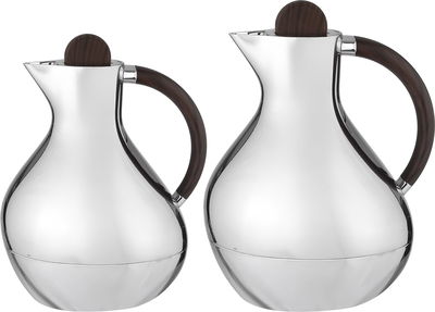 Al Saif Gallery Layal Thermos Set, 0.6/0.9 Liter, 2 Pieces, Glass Interior, Plastic Exterior, Wooden Handle, Push Button - Wooden Silver