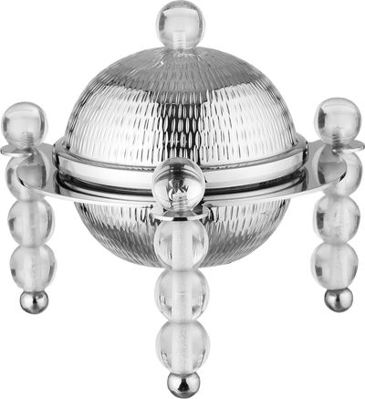 Al Saif Gallery Date tray with stainless steel lid, 16x16x15 cm, clear acrylic base, round - silver